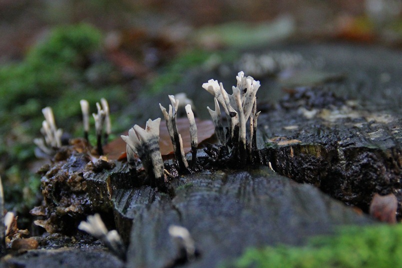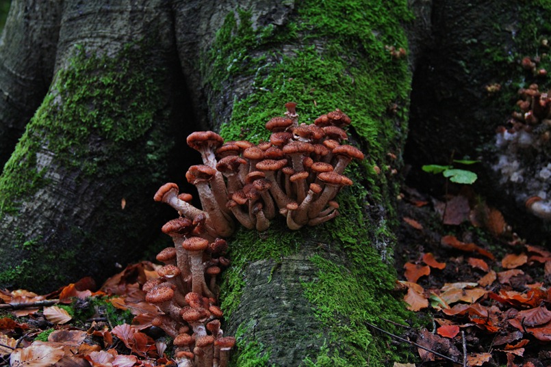 Zo nu en dan een paddenstoel. er waren weinig in dit bos.